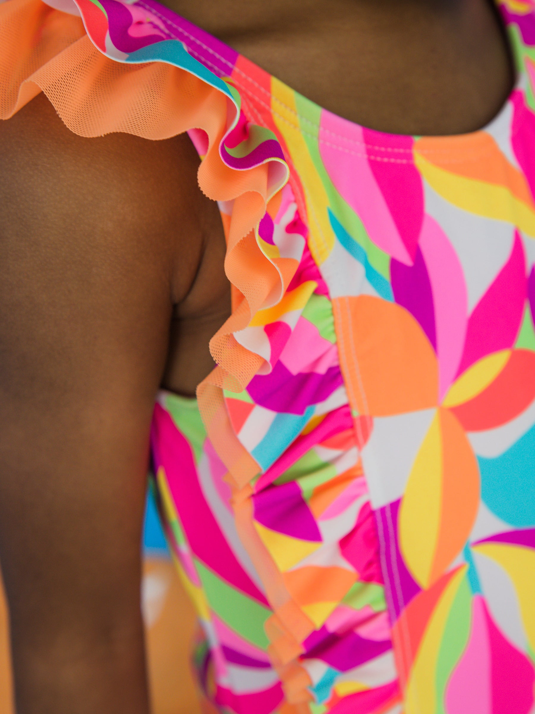 Make a splash this season in our Waterfall One Piece Swimsuit, featuring a vibrant neon tropical print that'll have your little one turning heads at the pool or beach. Designed for infant girls, this playful one-piece combines fun, bold colors with comfortable, reliable coverage. The eye-catching waterfall design adds movement and personality to every swim adventure. Perfect for sunny days and water play, it's the swimsuit that matches your baby's big personality!