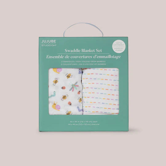 The Swaddle Blanket Set from JuJuBe × Studio Oh! includes two blankets, each with an irresistible, on-trend design. While perfect for swaddling newborns, these blankets can also be used for tummy time, as lightweight stroller covers, and as nursing throws.