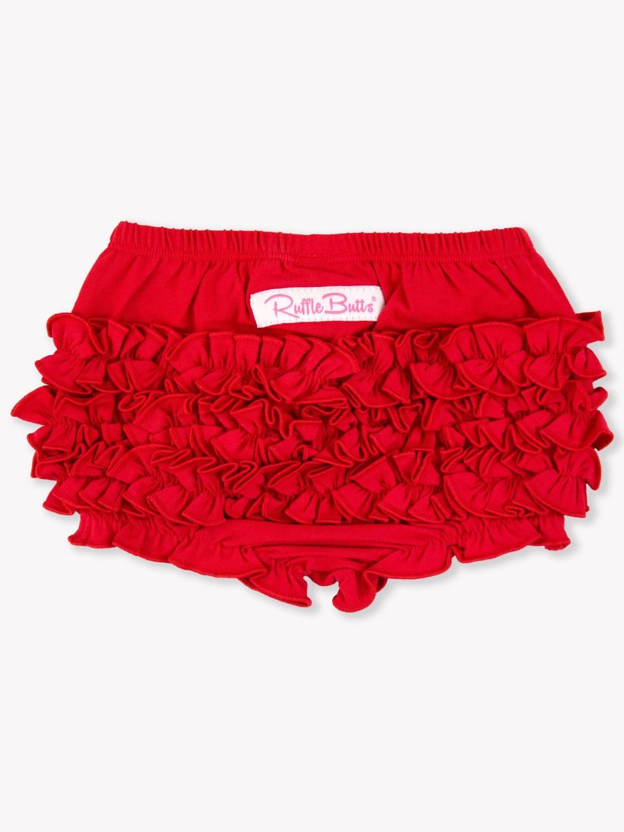 Pair it with white, black, gray, or gold tops for a complete look. Whether it's for seasonal wear or as beachwear, this red knit rufflebutt is a versatile addition to your child's wardrobe. Made from child-safe materials, it's not just cute but also safe.