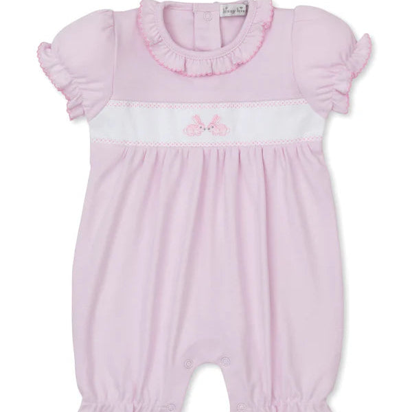 Our springtime bunny fun pink playsuit is the most precious playsuit for your baby. Made from the softest Pima cotton for ultimate comfort and featuring little bunny embellishments that she is sure to love!