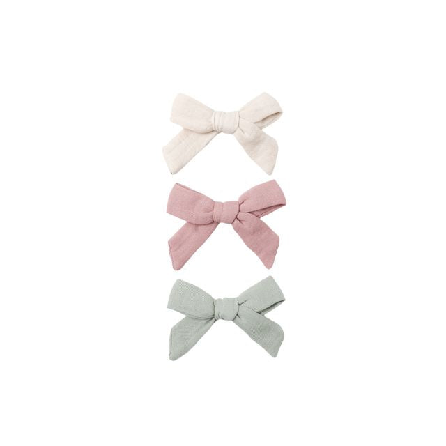 Bow W. Clip, Set Of 3 Natural, Mauve, Sage