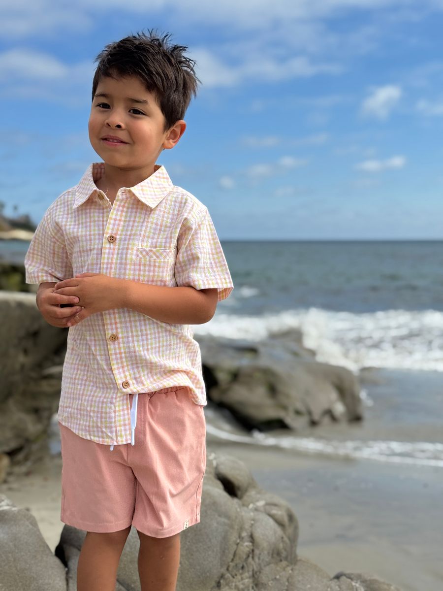 Your little man will look so dapper in this adorable short sleeve button down shirt.