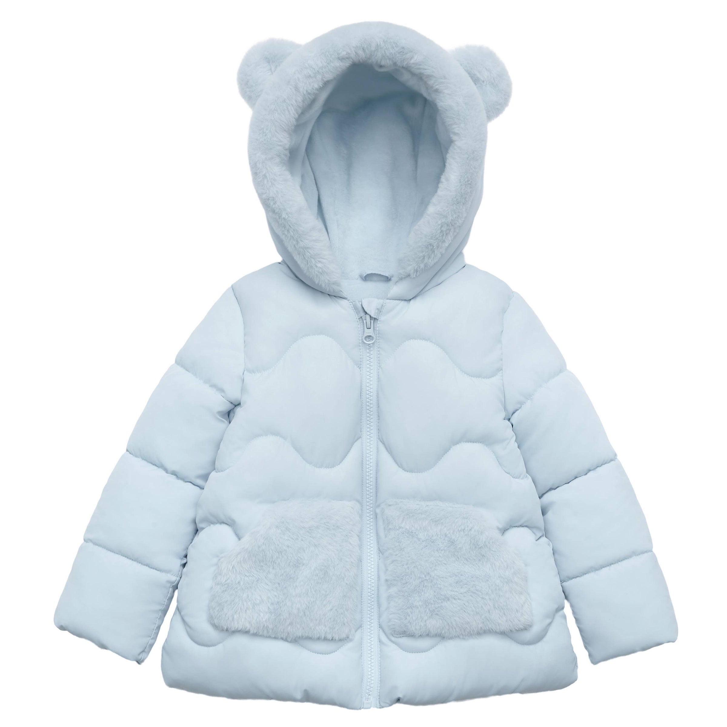 Mini Fur Lined Puffer Coat - Arctic Blue