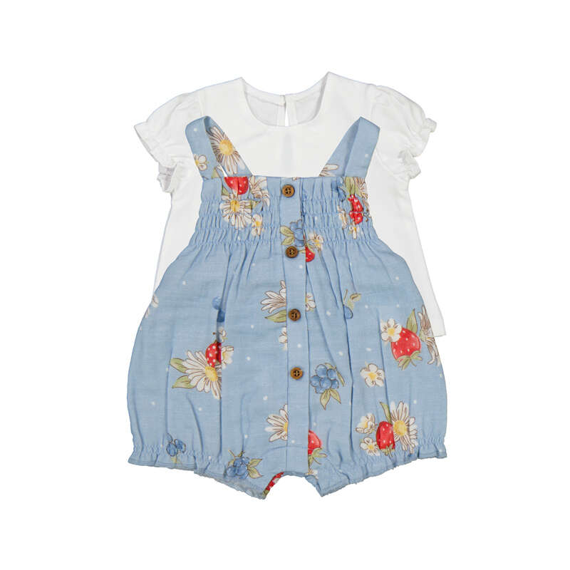 Strawberry Blossom Lagoon Blue Romper & Tee Set