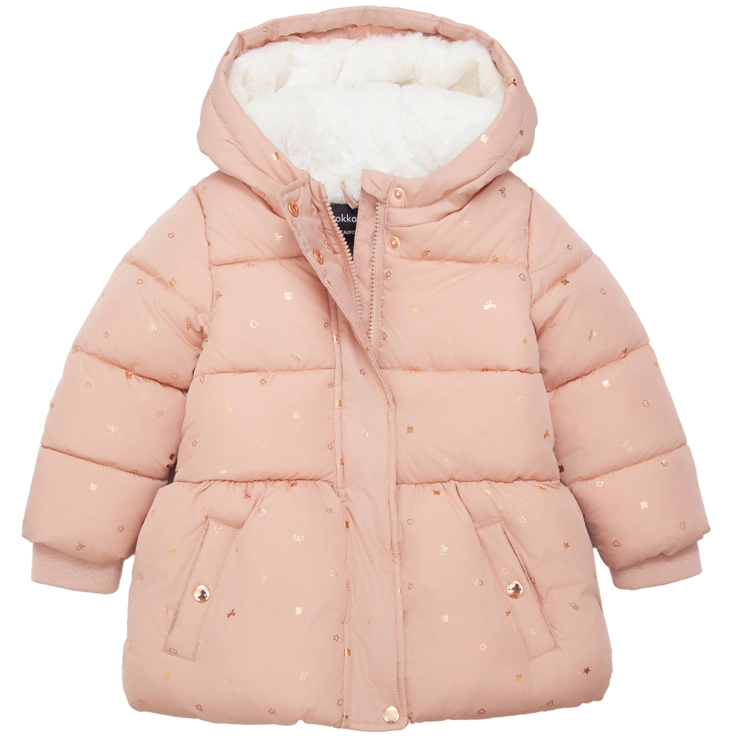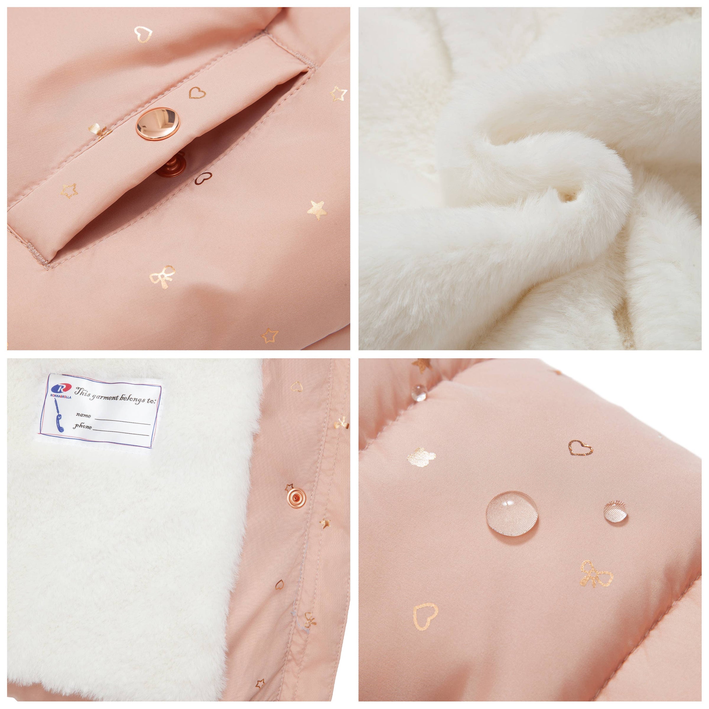 Wrap your little one in cozy charm with the Rokka&Rolla Toddler Girls' Starlight Winter Coat, designed to keep her warm, dry, and stylish all winter long. Featuring a full-length front zipper with snap closure and a chin guard for added comfort, this jacket is easy to put on and gentle on her skin. The full mini fur lining provides a soft, luxurious feel, while the ribbed cuffs help lock in warmth. With two snap side pockets for tiny treasures, a name tag for easy identification, and a water-resistant exterior with wind protection, this coat is perfect for chilly outdoor adventures. Finished with a cute starlight print, it’s as adorable as it is functional.