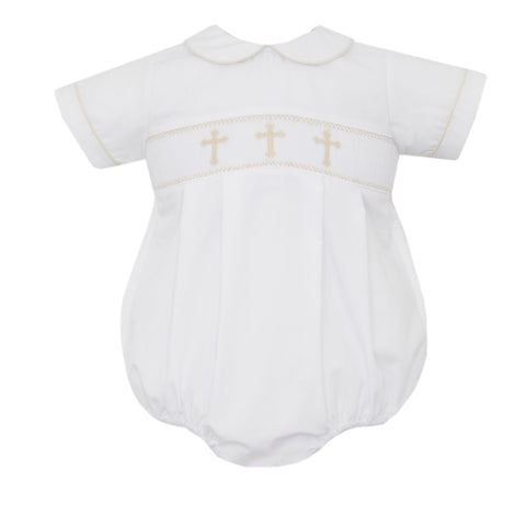 This classic white button down shirt with Peter Pan collar is a must for boys and girls alike! Pairs perfectly under jon jons, rompers, jumpsuits, dresses, sweaters, and just about anything you can think of. Bring those beloved smocked outfits up a notch with this wardrobe staple!
