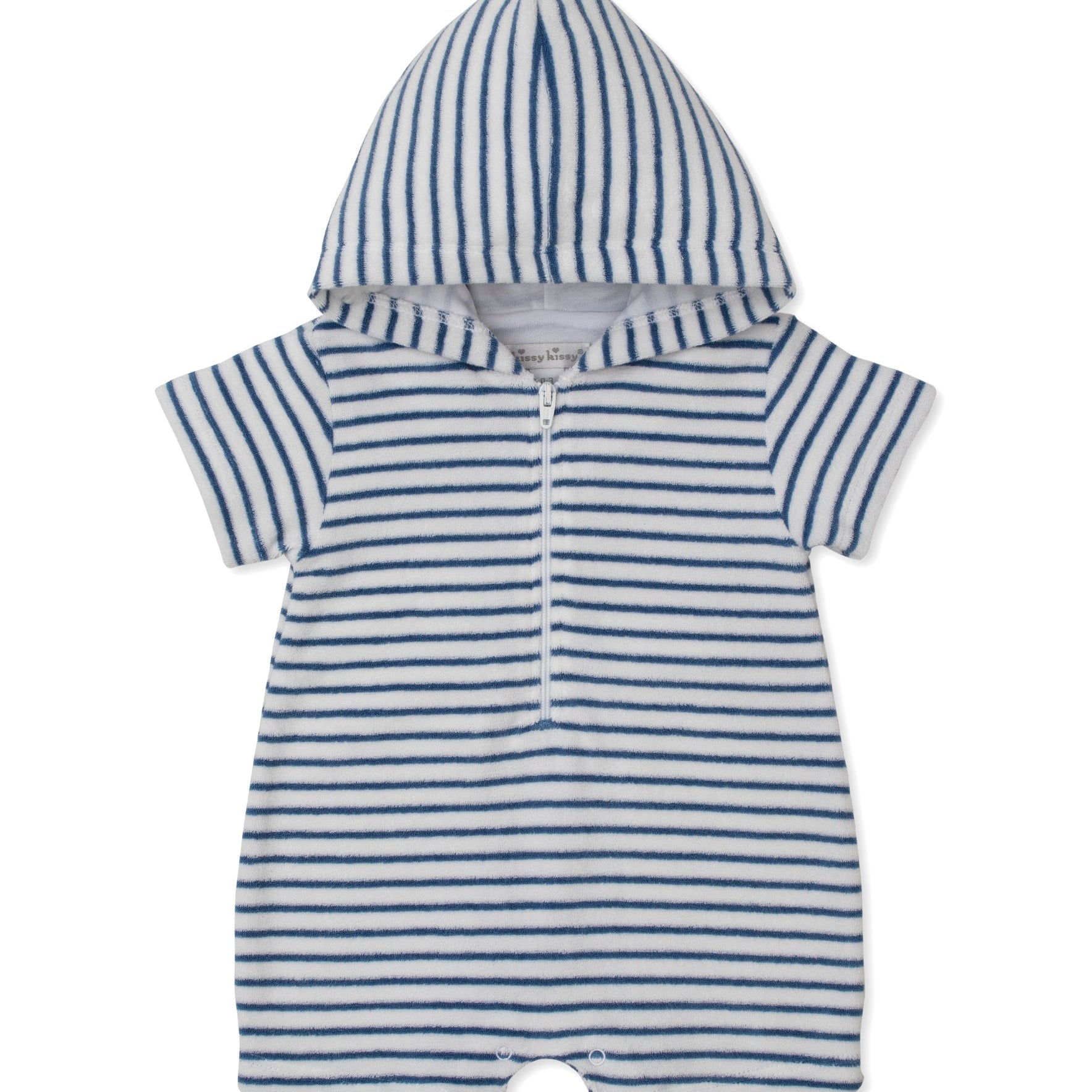 Ocean Antics Blue Stripe Terry Cloth Romper