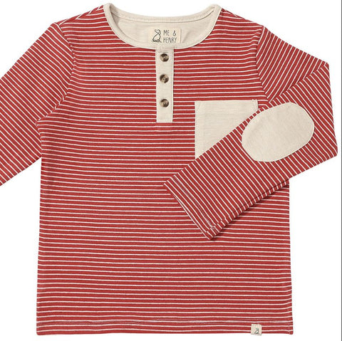 Your little guy will stay love sporting this comfy beige, blue and green stripe long sleeve tee.