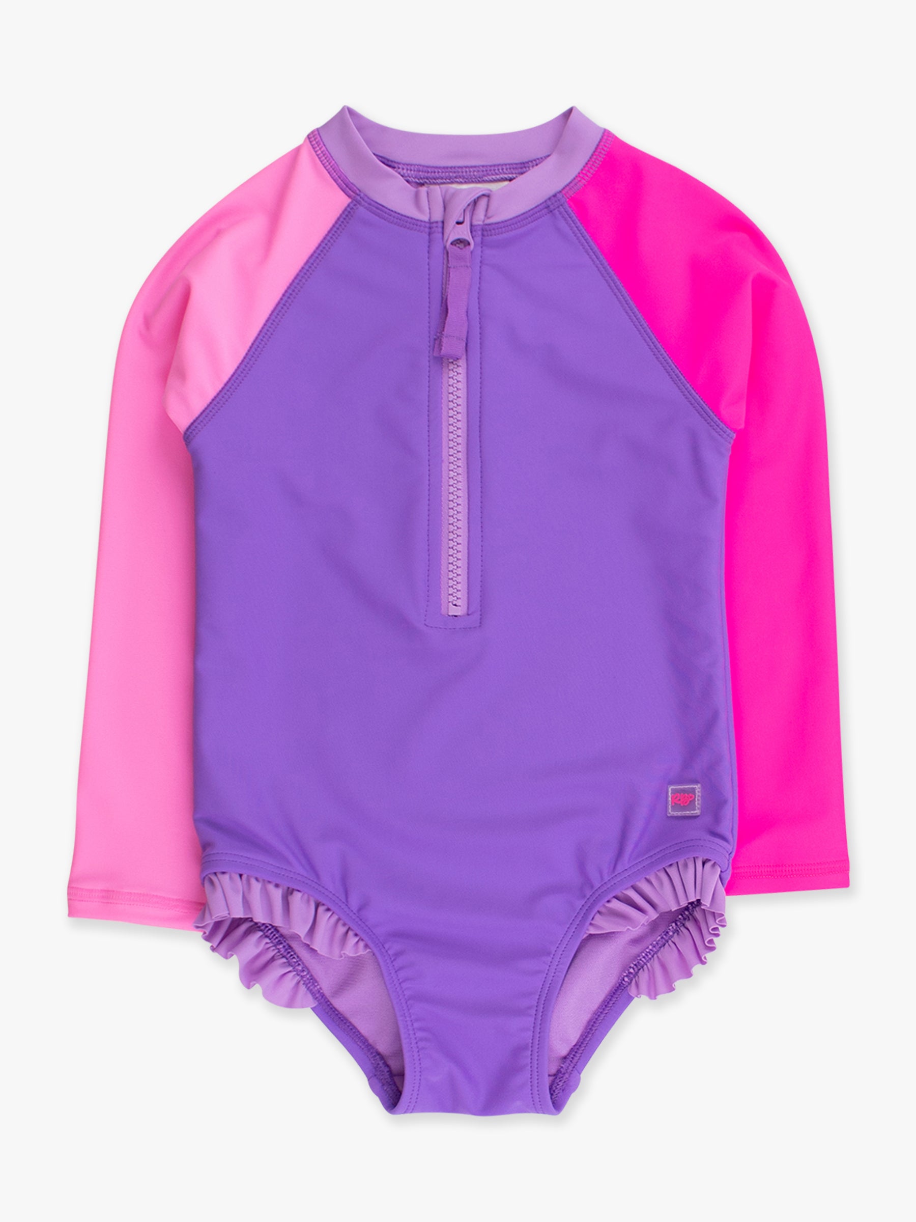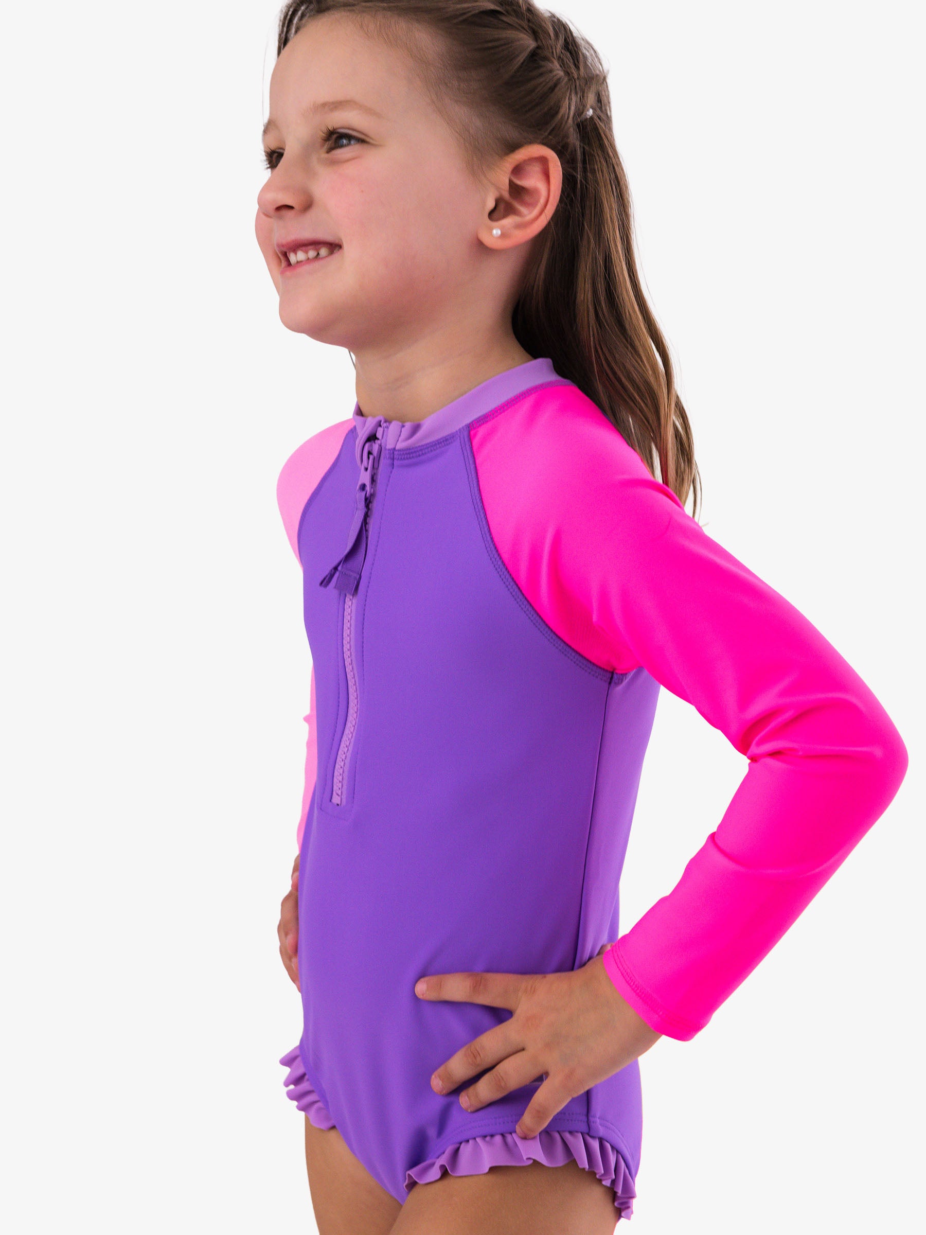 Long Sleeve One Piece Swimsuit - Neon Purple