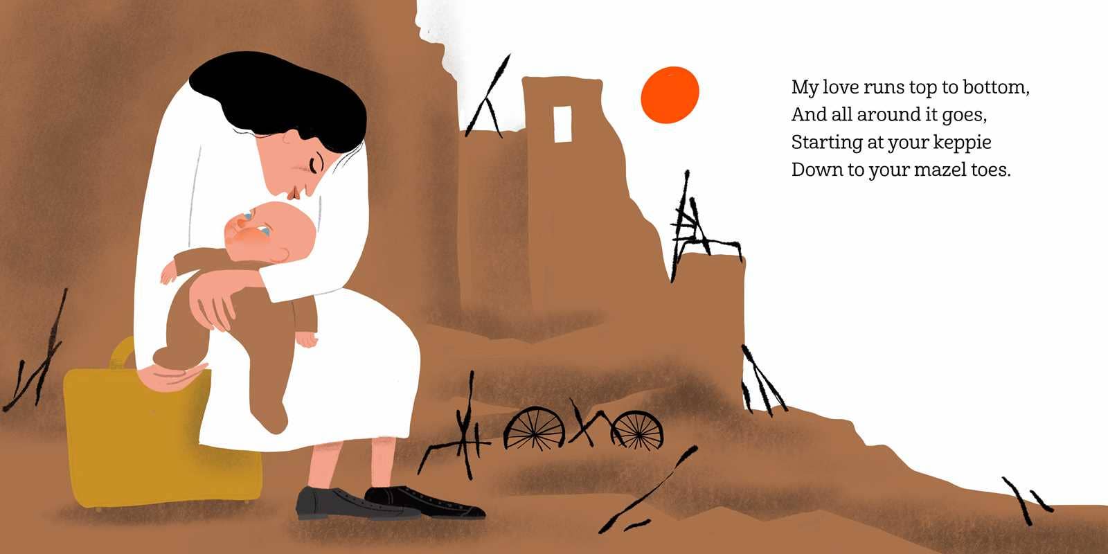 —Booklist With sweet gestures for every part of the body—like a kiss on the keppie and a boop on the nose—Mazel Toes! is a heartfelt love letter from parent to child. Author Audrey Barbakoff, a Jewish mother and educator, infuses each verse with cultural warmth and connection, while Annita Soble’s cozy illustrations honor the strength and diversity of Jewish families, from historic shtetls to modern-day homes.