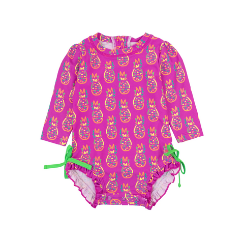 Keep them cool and protected from the sun's rays in this UPF 50+ sun protective hat for babies. Made of light-weight fabric and held secure with comfortable straps to tie under their chin, this baby sun hat is perfect for full days at the beach lake or pool!