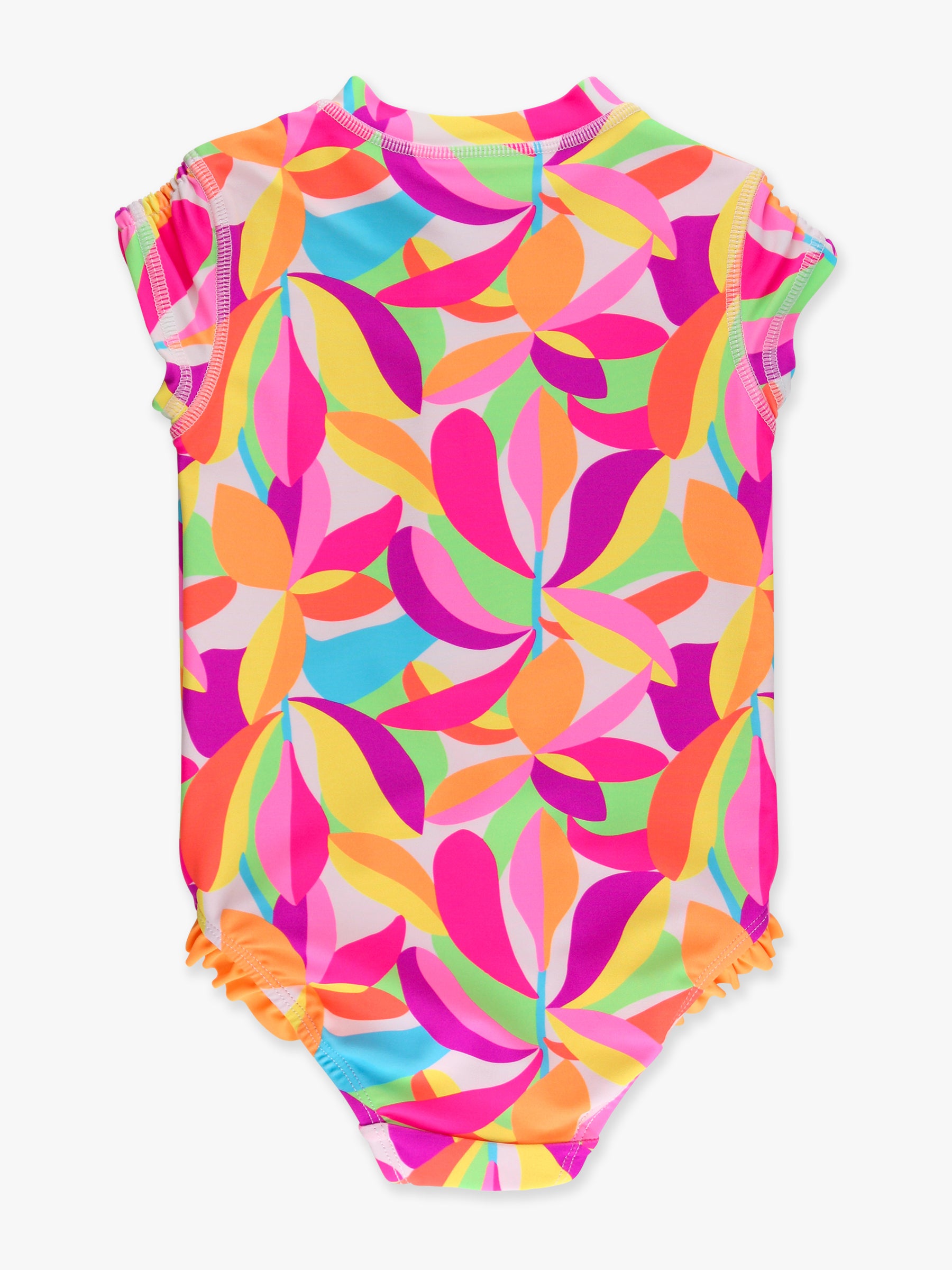 Short Sleeve One Piece Swimsuit - Neon Tropical